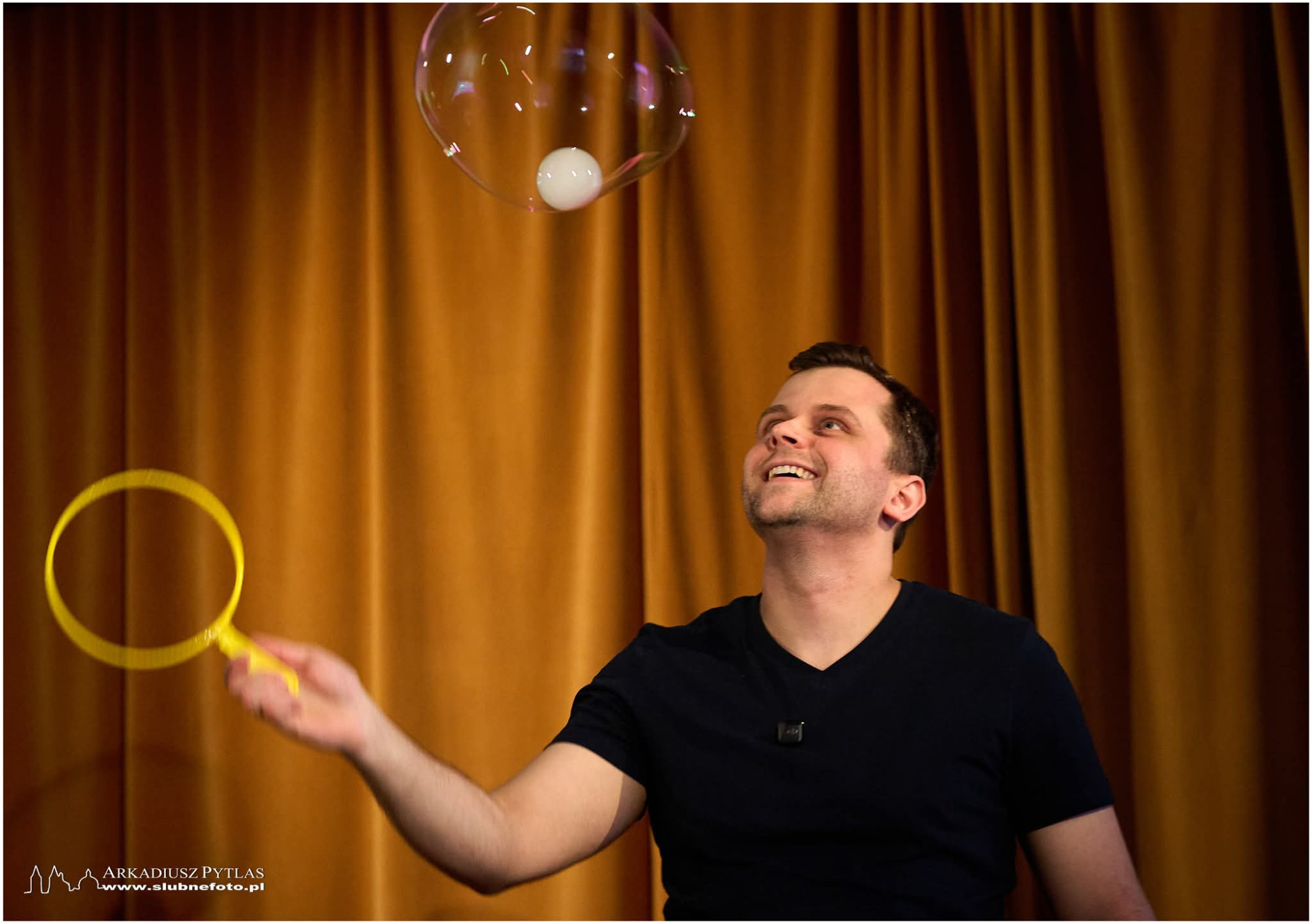 To zdarza się niezwykle rzadko, by dorośli tak dobrze się bawili na widok… mydlanych baniek. A jednak! Za sprawą Kamila Opasa, naszego PTF-owego czarodzieja, kwietniowe spotkanie stało się spontaniczną, niemal dziecięcą zabawą, pełną „ochów” i „achów”, ale przede wszystkim źródłem fotograficznych inspiracji; po głowach krążą nam już nowe, kreatywne wyzwania, ale o tym na razie sza!